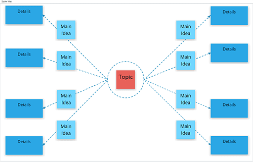 The spider map template is a great brainstorming tool that helps you arrange your thoughts around a central topic, encouraging imagination.