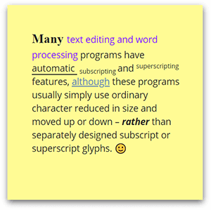 Don’t be limited to one font style. Combine different font sizes, font types, bold, italic, underline, superscript, subscript, and emojis in the same sticky note.